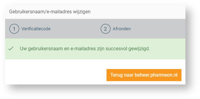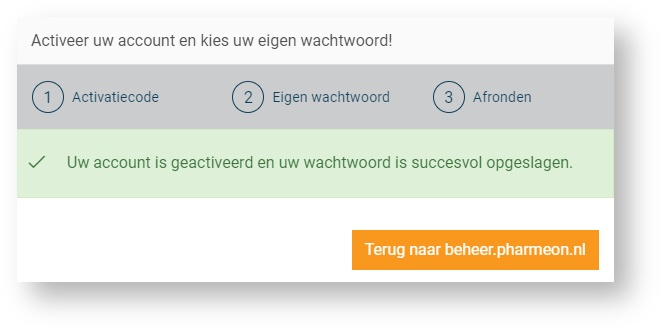 De volgende melding verschijnt. U kunt met uw nieuwe gegevens inloggen op https://Beheer.Pharmeon.nl.