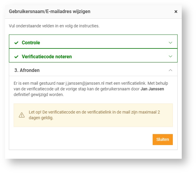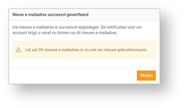 Om de gewijzigde gebruikersnaam/e-mailadres af te ronden ontvangt de beheerder een e-mail.