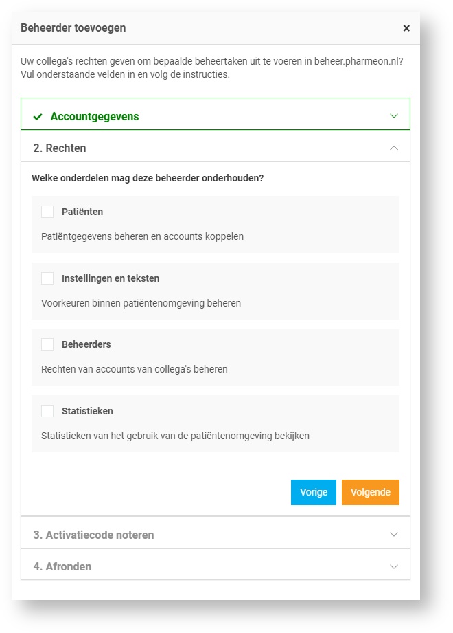Noteer de activatiecode om door te geven aan de nieuwe beheerder. Vink het vakje ‘Ik heb de activatiecode genoteerd’ aan en klik op Account aanmaken.