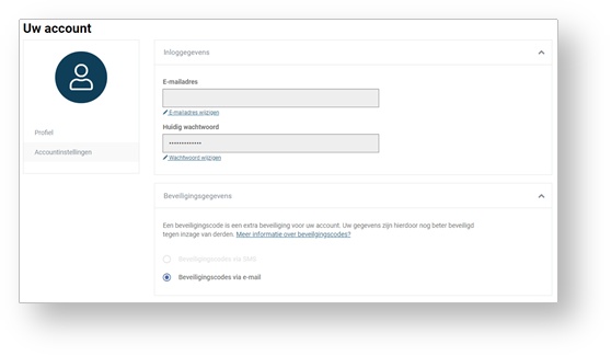 Na het activeren is het mogelijk om uw account aan te vullen met extra gegevens of om uw e-mailadres of wachtwoord te wijzigen.
