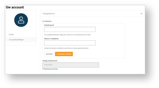 Bij het wijzigen van uw e-mailadres wordt om veiligheidsredenen eerst om het wachtwoord gevraagd.