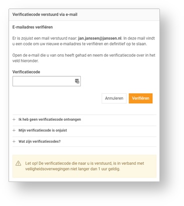Let op! U heeft 1 uur om uw gewijzigde e-mailadres te verifiëren.