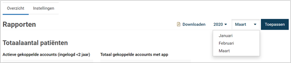 Met de statistiekenfunctie kunt u overzichten genereren van de verschillende activiteiten in de patiëntenomgeving. Zo ziet u bijvoorbeeld hoeveel gekoppelde en niet-gekoppelde patiënten u heeft en krijgt u inzicht in het gebruik van de online diensten binnen uw praktijk.