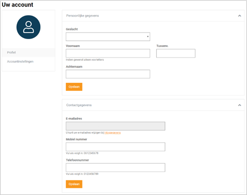 Na het activeren is het mogelijk om uw account aan te vullen met extra gegevens of om uw e-mailadres of wachtwoord te wijzigen.