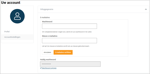 Bij het wijzigen van uw e-mailadres wordt om veiligheidsredenen eerst om het wachtwoord gevraagd.