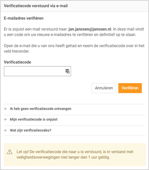 Vul de verificatiecode in die u het nieuwe e-mailadres heeft ontvangen en klik op Verifiëren.