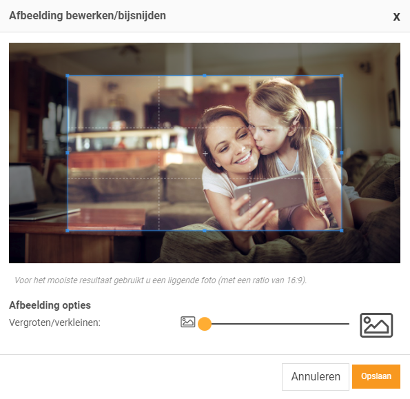 Klik op het potloodje bij de afbeelding om deze te selecteren, te verwijderen of te bewerken.