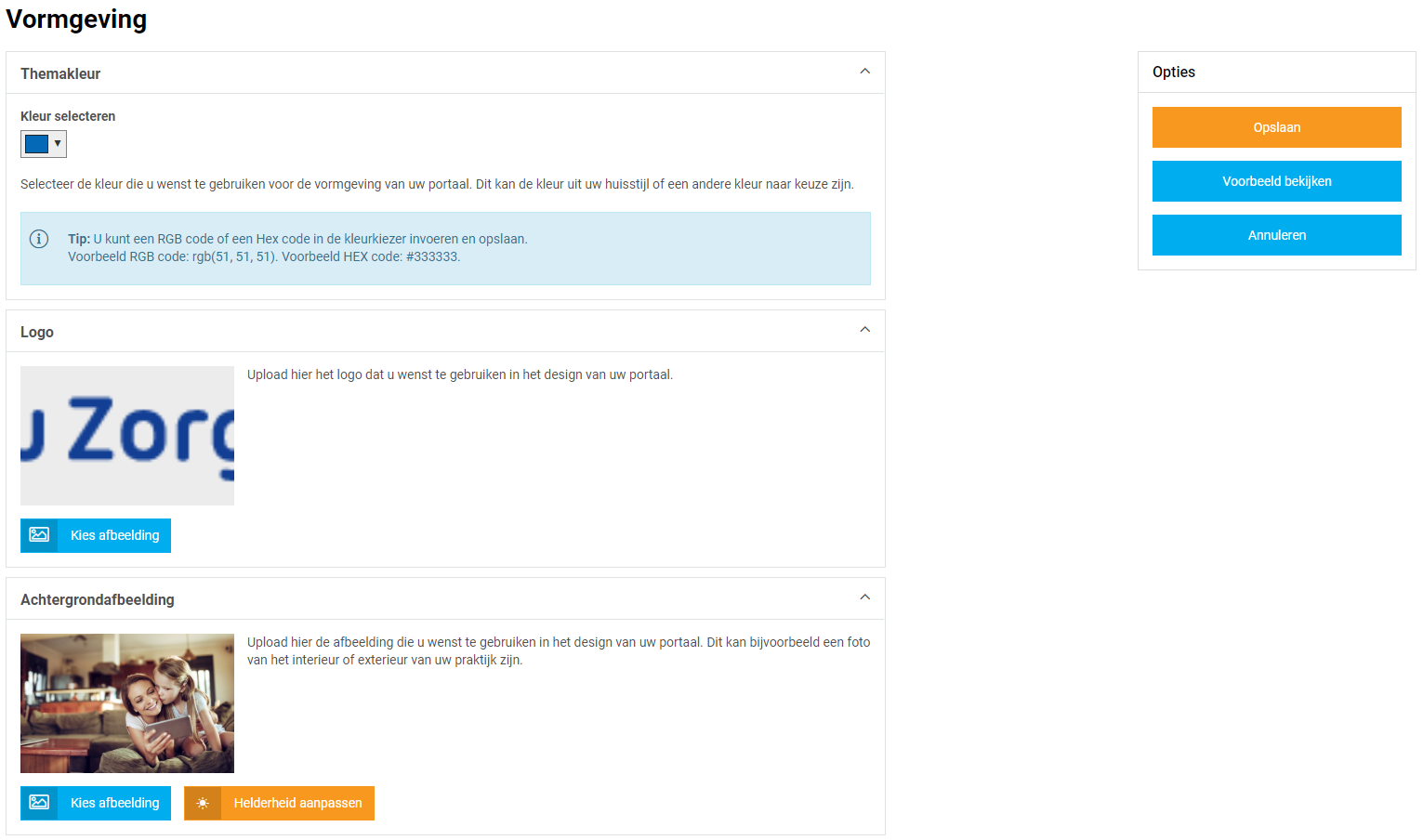 Om de patiëntomgeving volledig aan te laten sluiten bij uw praktijk is het mogelijk om naast het aanpassen van de teksten ook de vormgeving van de patiëntomgeving aan te passen.