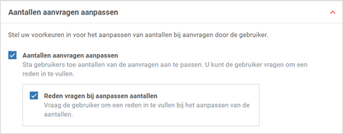 Standaard kunnen patiënten de aantallen bij het bestellen van medicatie niet aanpassen. Wilt u deze mogelijkheid wel, dan kunt u Aantallen aanvragen aanpassen aanzetten. U kunt de patiënt dan ook om een reden van deze aanpassing vragen.