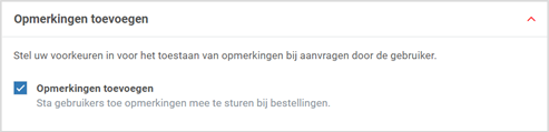 Hier heeft u de mogelijkheid om patiënten een opmerking met hun bestelling mee te laten sturen.