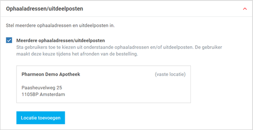 Heeft u naast het adres van de apotheek ook nog een of meer uitdeelpost(en)? Geef dan de patiënt de mogelijkheid om een van deze adressen te kiezen.