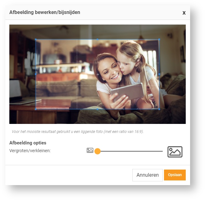 Klik op het potloodje bij de afbeelding om deze te selecteren, te verwijderen of te bewerken.