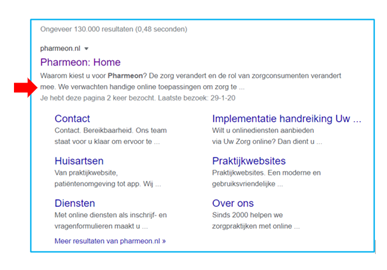 De meta description is de omschrijving in het zwart onder de titel.