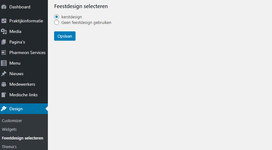 Het feestdesign is actief.